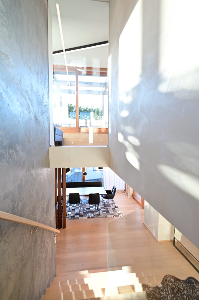 2. OG: Eingangsbereich, Wohn-/Essbereich mit Terrassenausgang, Küche, Schlafzimmer, Ankleide, Master-Bad mit Dusche und Wanne, Abstellraum,Gäste-WC