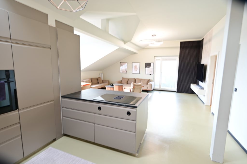 den modernen Charakter der Wohnung und sorgt für ein gepflegtes, hochwertiges Ambiente. Die Designküche ist elegant
