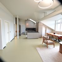 Eingangsbereich, großer loftartiger Wohn-/Essbereich mit integrierter Küche, Schlafzimmer, großes Kinderzimmer, Bad mit Wanne & WC, Balkon.