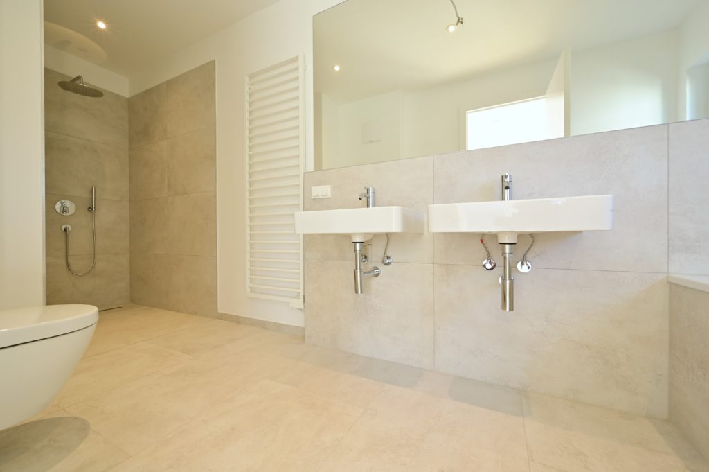 - Modernes, großformatiges Feinsteinzeug