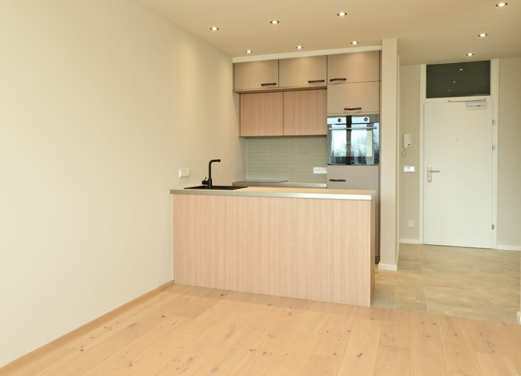 Flur/Eingangsbereich, praktischer Abstellraum, separates WC, geräumiger Wohn-/Essbereich mit integrierter Küche und Zugang zur Loggia mit Festungsblick, Schlafzimmer, Duschbad mit WM-Anschluss.
