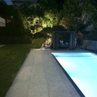 Der Wohntraum setzt sich im Außenbereich fort, wo ein 700 m² großer Garten mit mehreren 35 Jahre alten Pinien aus Italien aufwartet. Eine überdachte Terrasse mit 140 m² sowie ein Edelstahlpool (10 x 4 m) mit modernster Pooltechnik von BWT und einer großzügigen Poolterrasse (63 m²) laden zum Entspannen an sonnigen Tagen ein.