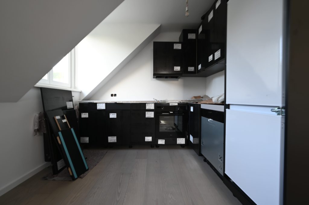 Flur, Gästezimmer/Office, Abstellraum, separates WC, Luxusbad mit Dusche, geärumiges Schlafzimmer, offener Wohn-/Essbereich mit integrierter Küche.