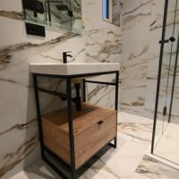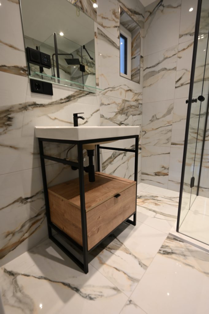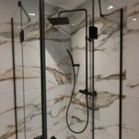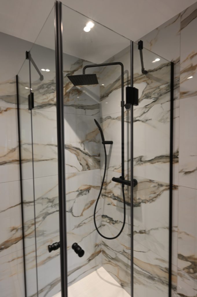 - Designbad mit Marazzi Fliesen, Walk-in Shower und schwarzen Armaturen